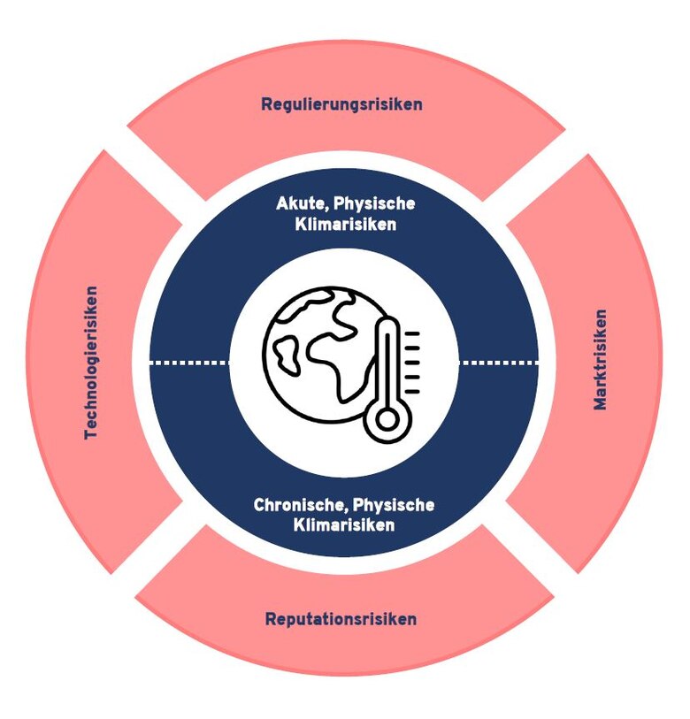 Im nachfolgenden werden zwei Risikoarten unterschieden, so wie in den Vorgaben zu den European Sustainability Reporting Standards (ESRS) und den Empfehlungen der Task Force on Climate-related Financial Disclosures (TCFD) zur Transparenz von Klimarisiken Anwendung finden. Es handelt sich dabei um physische und transitorische Klimarisiken. Physische Risiken werden in den Ausprägungen akut und chronisch unterschieden und fassen alle Risiken und negativen Folgen durch klimatische Veränderungen zusammen. Transitorische Risiken fassen alle Risiken im Zusammenhang mit dem Übergang zu einer kohlenstoffarmen, 1,5-Grad-konformen Wirtschaft zusammen.